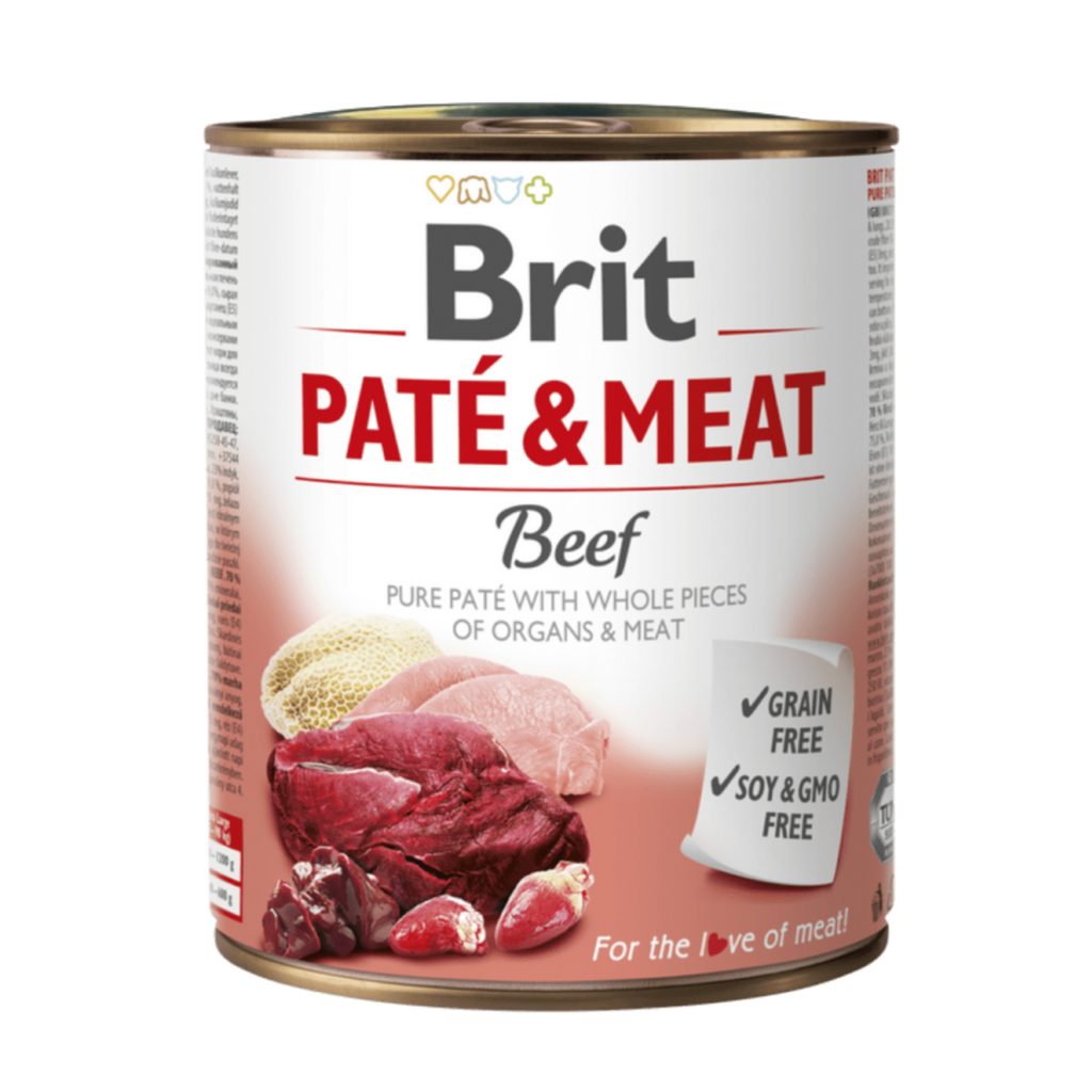 Die köstliche Dose Brit Paté ist eine Kombination aus weichen Rindfleischstücken und Fleischpastete. Ein schmackhaftes Alleinfuttermittel für jeden Hund.